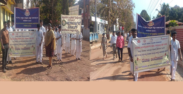 III year B.Sc (N) students along with Mr. Ganesh Naik, Lecturer and Ms. SahanaNaik,Nursing Tutor of KLES Institute of Nursing Sciences, Ankola had participated in this campaign. Mrs. ShantalaNadkarni, Municipality President, inaugurated the rally by hoisting the Green Flag. Dr. NitinHosmekar, Taluka Health Officer delivered thepresidential speech regardingthe “Rose campaign” of Tobacco Control Awareness Programme.
